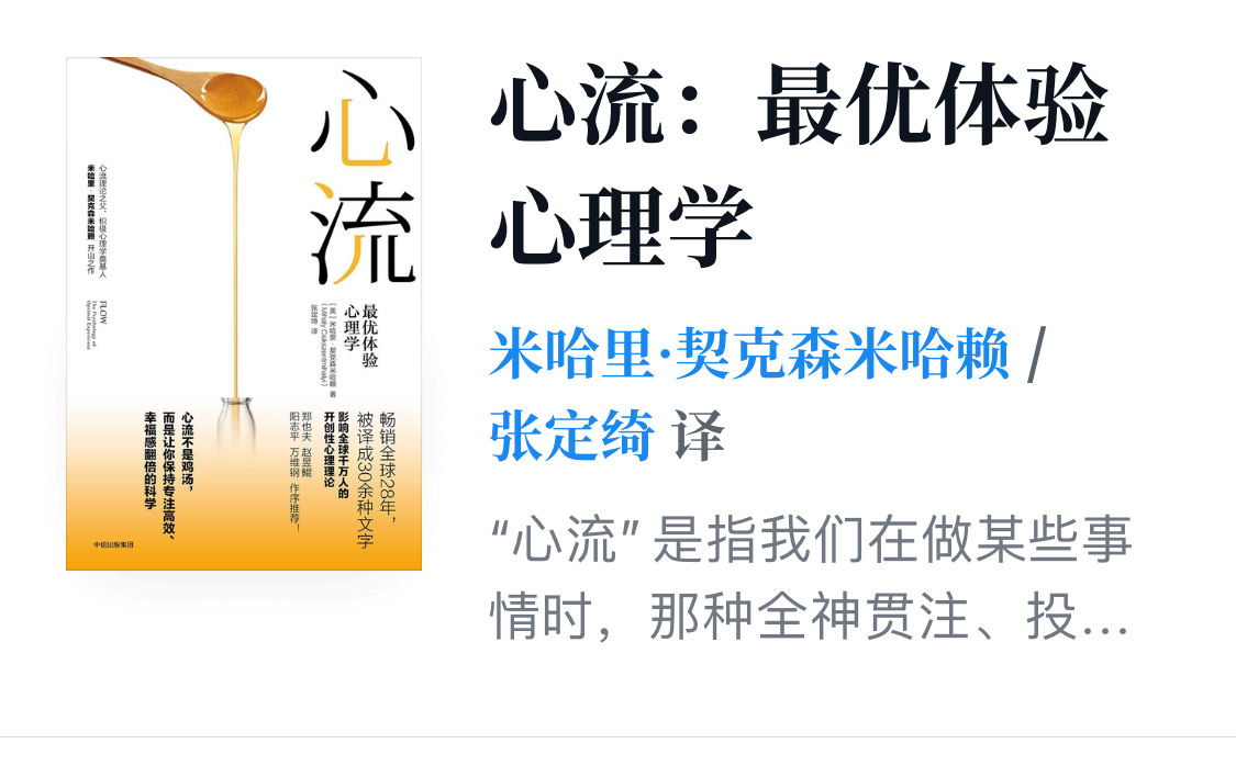 给大家推荐我自己觉得对我非常有帮助的书籍 :心流 Flow